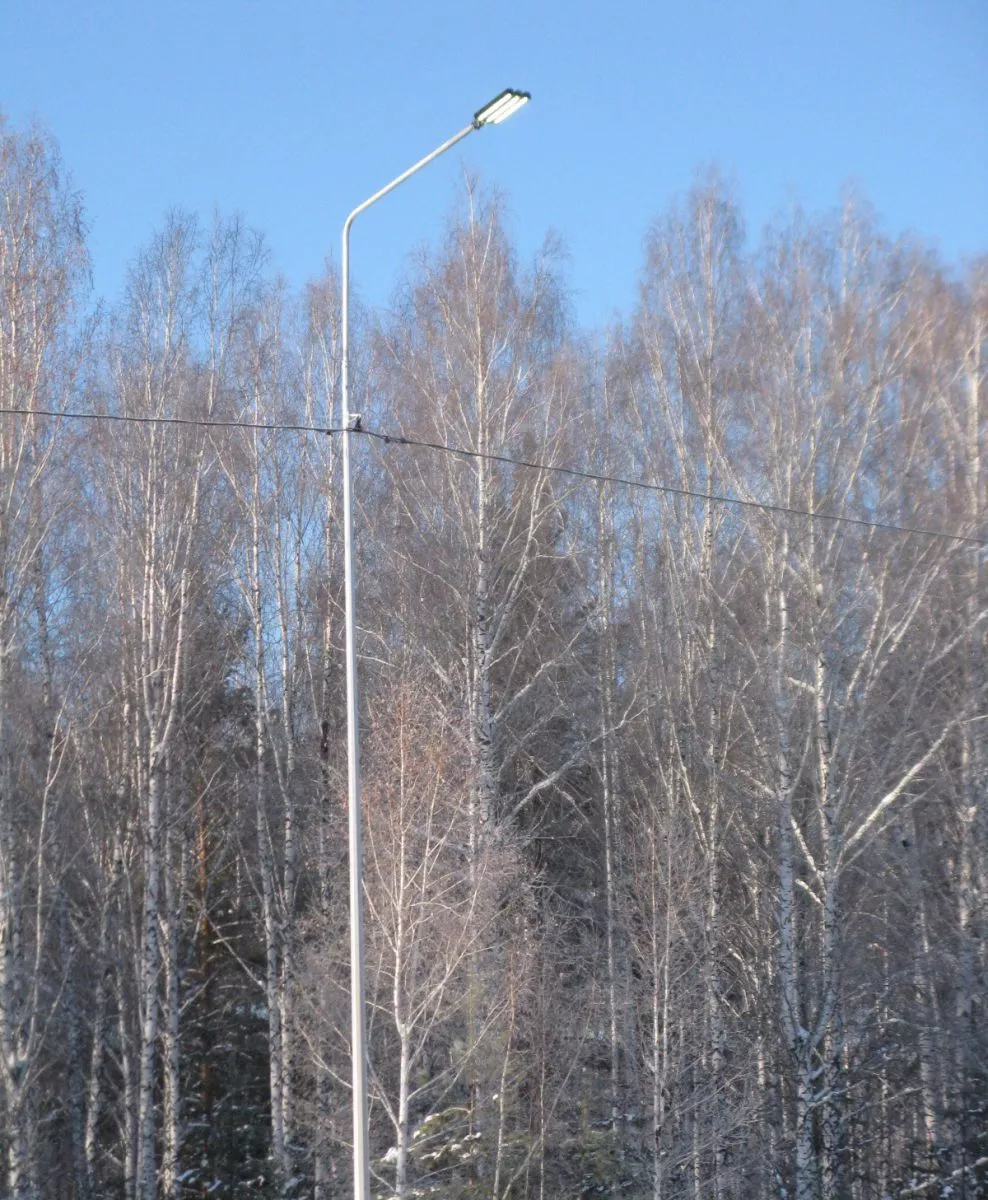 Оцинкованные металлические опоры ОГС-0,4-10 и ОГК-10, установленные на объекте, имеют стильный дизайн, небольшой вес по сравнению с аналогами, представленными на рынке, за счет чего снижается стоимость изделия, и большой срок службы, достигнутый благодаря покрытию конструкции горячим цинком.