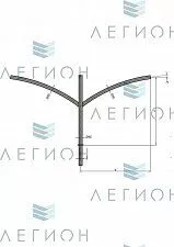 Изделие имеет два ответвления для крепления светильников с возможностью индивидуальной настройки угла наклона. Кронштейн изготавливается из высокопрочной стали толщиной от 3 миллиметров. Конструкция предусматривает различные варианты установочных мест и высоты вылета от 0,8 до 2,5 метров. Производство позволяет изменять конфигурацию изделия под конкретные проектные задачи.